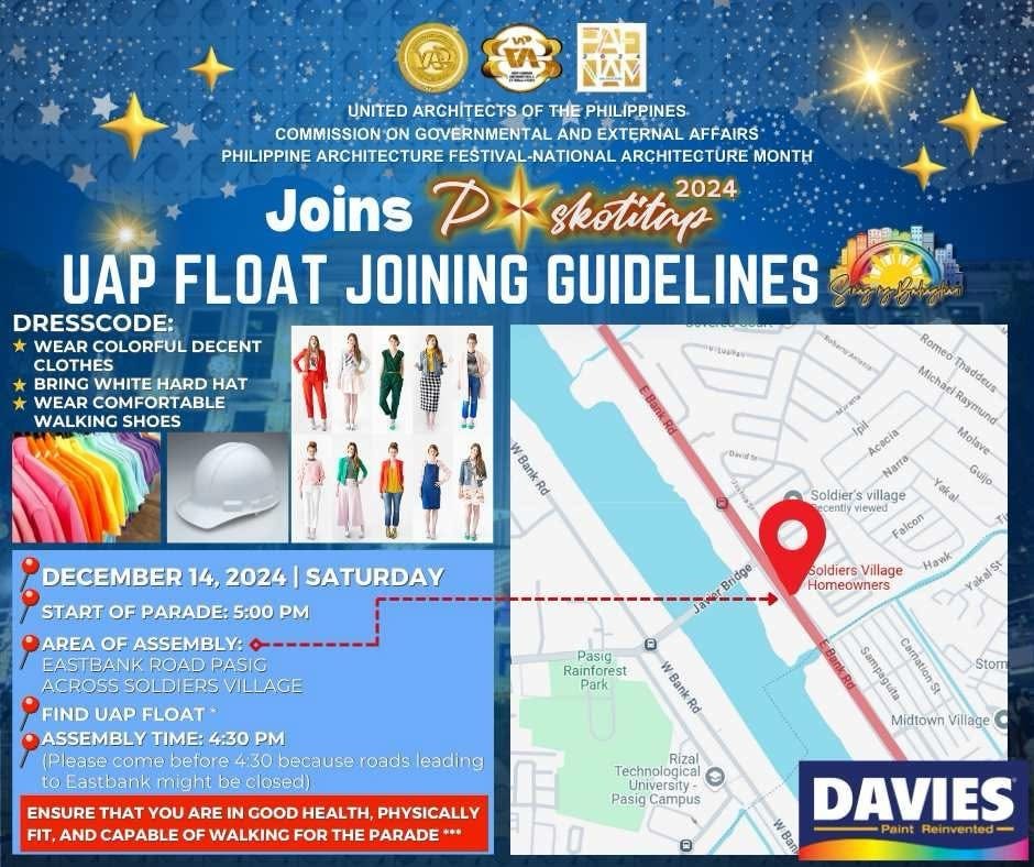 We need at least 10 participants to join this exciting event celebrating the UAP Philippine Architecture Festival – National Architecture Month 2024. “Connecting Traditions, Shining to the Future”